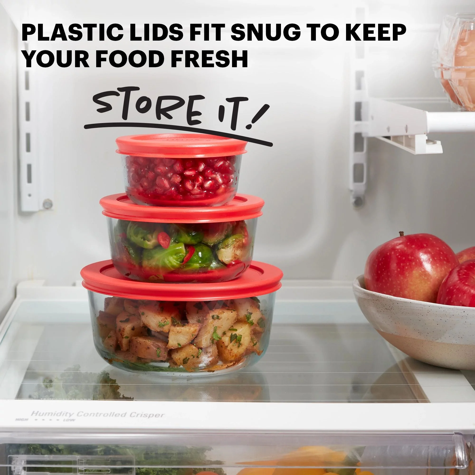 Pyrex® Simply Store® 6-piece Round Glass Storage Set with Red Lids
